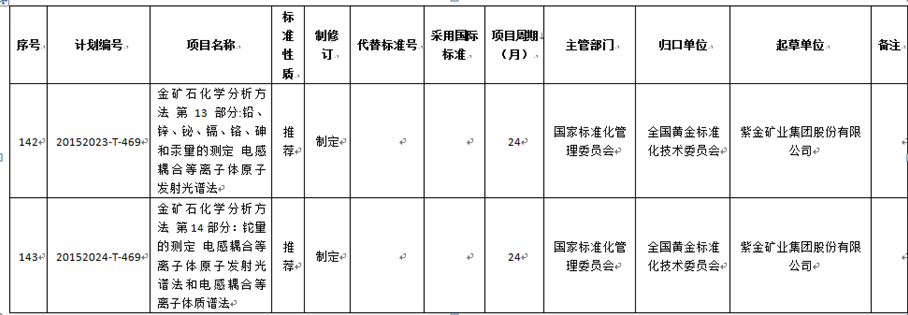 2015年国家标准项目计划下达(第二批)